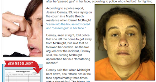 わからんでもないですけど。というわけでアメリカはサウスカロライナ州からのニュースです。顔にオナラをかけられて激怒した女性が男性を殴打する事件があり、逮捕されているとのことです。