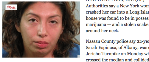 <ネタ元:Driver With Stolen Snake Wrapped Around Neck Smashes Into Fire Station: Cops>