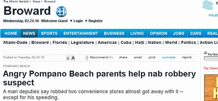 と、いうわけでめでたく解決。事件が起きたのはアメリカのフロリダなのは百も承知ですけど、どうもイメージ的に日本のおばちゃん的な「ちょっとあんたどういうつもり!」「子供が危ないじゃないのよ!」「迷惑してんのよね!」「警察呼びましょ警察!ほら、電話して!」「ちょっとあんた逃げるつもりじゃないだろね!ここは動かないよ!」な感じのイメージが浮かんで仕方ありません。強盗も捕まった相手が悪かったね