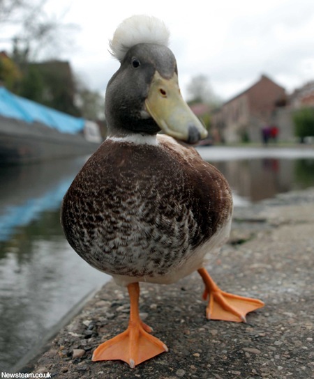 そそくさと通り過ぎる横で悠然と泳ぐ一羽のカモ。このカモが最近話題の「パンク・ダック」です。なぜか頭にモヒカン状の毛が生えていることから一躍有名となりました。イギリスはウースターシャー州からのニュース。