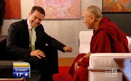 オーストラリアからのニュース。チベット仏教の最高指導者であるダライ・ラマ14世がオーストラリアでテレビ局を訪れ、インタビューに応えてくれました。その際にキャスターのカール・ステファノビッチが彼にジョークを放ったのですが、師は何が面白いのかわからずポカンとする場面があったそうです。ではちょっとそのシーンを御覧いただきましょうか。