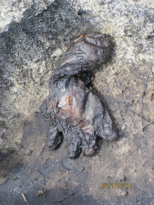 というわけでハワイはホノルルからのニュース。写真の腕のようなもの、なんだと思いますか?先日、「切断されて焼けこげた人間の腕が落ちている」と大騒ぎになり、警察が急行するという事件がありました。場所はモクアウイア島。とある家族が大慌てで警察に通報したのですが、実物を見た警察ではすぐに断定。