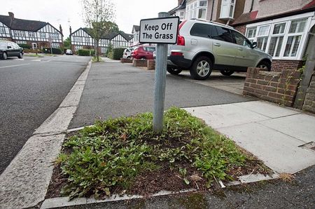 えー、一目瞭然といいますかなんというか。たかだか1㎡程度の芝生に「芝生に入らないでください」の看板が出ており話題です。イギリスからのニュース。人一人入るのも困難な広さではありますが、フットボールやピクニックは禁止です。ご注意を。