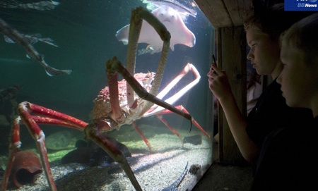カニと言えば日本では美味しいものと誰もが思っているわけですが、海外ではどうも違うようです。写真はタカアシガニというカニの中でも巨大な種ですが、イギリスのバーミンガム・シーライフ・アクアリウムではこのタカアシガニを捕獲・展示する際にゴジラにリスペクトしたのか「Crabzilla:クラブジラ」と命名。自分であおっておきながら、来館者が不安がっては困るからと、このカニから人間が傷害(死を含む)を受けた場合のために130万ポンド(約1億6千万円!)の保険をかけました。水族館当局では
