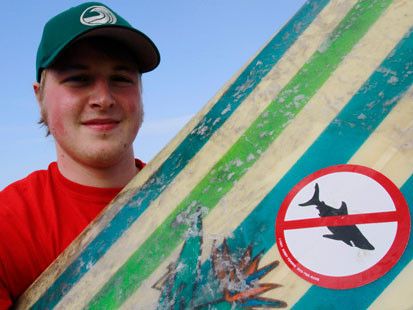 結果、彼はどうにか無事で生還することができました。そんな恐ろしい経験をしたにも関わらず、ダウさんはまたサーフィンをしに海へ出るつもりだそうです。ただし、サメはもうゴメンだからと、ボードには「サメ禁止」のステッカーを下に貼りました。