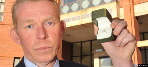 さて、写真の男性はグレゴリー・トッドさん48歳。彼は先日法廷でティファニー・ベイリーさん(32)が現れたら片膝をついて指輪を差し出し、プロポーズをする予定でした。けれども片膝をつくのがうまくいかず、プロポーズの言葉もうまく伝えられませんでした。結局彼は公開の審理において、彼の弁護士を通し、法廷の場でその言葉を届けることになったのです。ちなみに、なぜティファニーさんが法廷に出なければならないかというと、彼女はグレゴリーさんが寝ている間に、彼の背中に12インチの包丁を突き刺したからなのです。