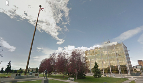 このポールは元々1959年に建てられたもの。その後、ポールの腐食が進んでいるということで少し短く切られ、後に場所も市役所前からディレイニー・パークへと移されました。