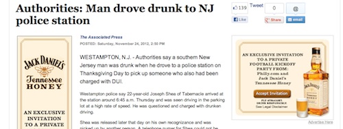 こちらはスウェーデンのニュースでした。タイトルを見たらわかるとおり事件の内容はまったくおんなじです。これから忘年会シーズンですし、お互い気をつけなくちゃですねー、なんて。それにしても元記事↑なんですけど、表示されてる広告がジャックダニエルってのがまた皮肉がきいてていいと思います