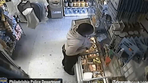 事件が起きたのは9月18日の午後1時43分、フィラデルフィアにあるちいさな食料品店。一人の男がやってくると、カウンターの従業員に現金とタバコをよこせと脅したのです。ポケットに何か武器のようなものを忍ばせており、それを服越しに従業員に突きつけました。従業員は仕方なくレジにあったタバコといくらかの現金を渡すと、男は店の外に止めてあった自転車に飛び乗ると逃走したということです。