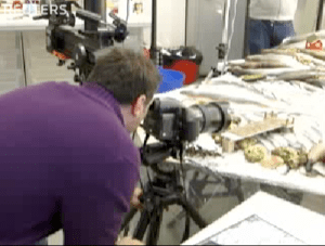 おお、海の波は本当に魚ですね!極力フォトショップなどを使わず、実際に並べたものを撮影しているようで妙な質感があるのが魅力ですよね。ちなみに撮影風景はこんな感じのようです。