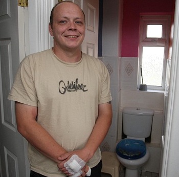 事故が起きたのはエセックスのクラクトン、月曜日のことでした。クリスさんが妻のジャニーンさんにに「クモがいるわ!なんとかして!」と呼びつけられました。トイレまで男性は駆けつけたものの、すでにクモは便座の後ろに隠れてしまっています。彼は消臭剤のスプレーでクモを追い払おうとします。