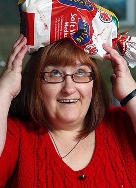 ↑写真のパンを頭に掲げているのはリズ・ダグラスさん(51)。二人の子どもを持つお母さんです。事故が起きた様子を振り返りながら、ちょっとおどけてその時のパンを再現してくれました。