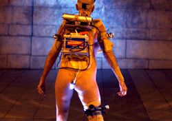 この男性はジェーム・デル・ヴァルさん。言ってしまえば現代の露出狂といったところなのですが、過去の露出狂が汚いレインコートに自分自身を隠していたのとは違い、ジェームズさんは自分の体にバッテリーにカメラ、プロジェクターをくくりつけ、自らのペニスを撮影してはそれをその場で建物の壁に映し出しているのです。現在もプロジェクターの装備一式以外は写真のように裸で、マドリッドの街中を歩き回っているとか。元記事によると、この行為が芸術なのかそれとも単なる女性を怖がらせるための露出趣味なのかはわからないとしています。
