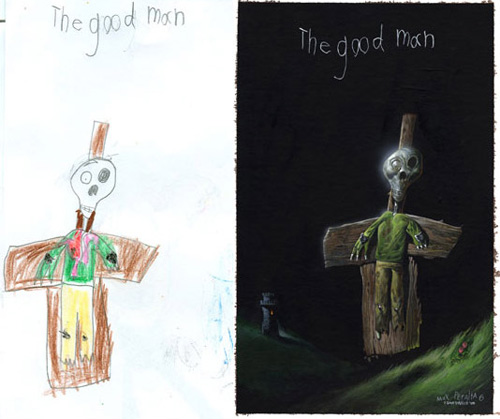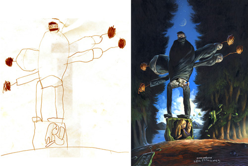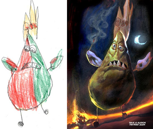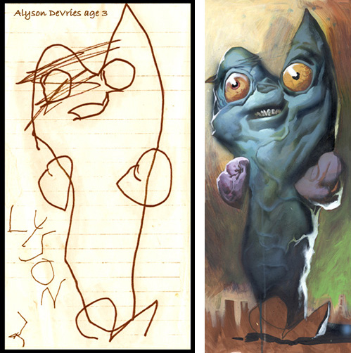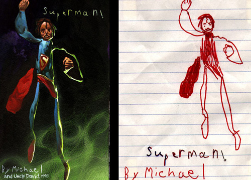 「画家として、以前はマーベルやDCコミックが好きで、出てくる絵を毎日3次元の立体的なものとして見ていたんです。それを子供の絵にも生かさない手はないでしょ?」とデイブさん。創作の元になっているのは前述のジェシカさんの絵に対する興味だそうで、
