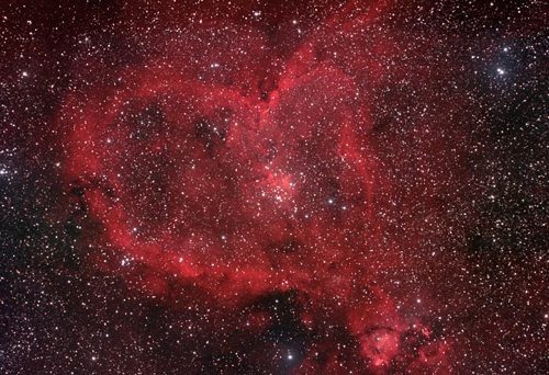 地球を飛び出して今度は宇宙!カシオペア座にある星雲IC1805は「ハート星雲」として有名です。光る星間ガスと暗黒星雲がひとつに混合した結果、偶然このような形が形成されたのだとか…。