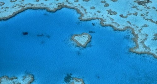 世界最大の珊瑚礁、グレートバリアーリーフにあるウィットサンデー諸島。ハートリーフと呼ばれるハート形の珊瑚礁があるのです。