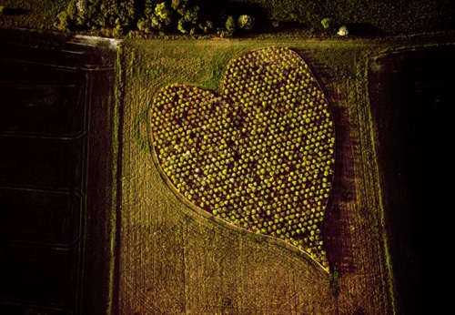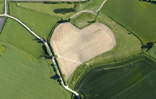 イギリスはウィルトシャーのハイッシュというところには果樹園の木がハート形に集まっている場所があります。グーグルマップで探したらありました。こちらです。