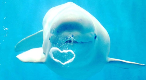 最後は愛らしいシロイルカ君の作ってくれたハート。場所は中国黒竜江省、ハルビン・ポーラーランドという水族館的施設です。