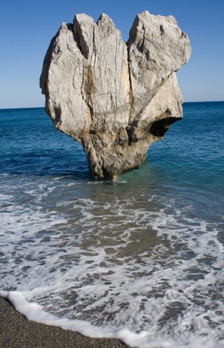 ちょっと強引だけどこちらはハート形の岩。ギリシャはレティムノのパームビーチに立っています。