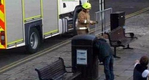 事件が起きたのはイギリス北部のアバディーンで、この男性はタムと呼ばれる52歳の方。先週日曜日の夕方、通りにあったごみ箱に頭を突っ込んだ状態で動けなくなってしまいました。周囲にいた人から通報を受けた消防隊が救助のために駆け付けたのですが、なかなか外すことができません。仕方なく電動のこぎりを持ち出しごみ箱ごと切るはめになってしまいました。