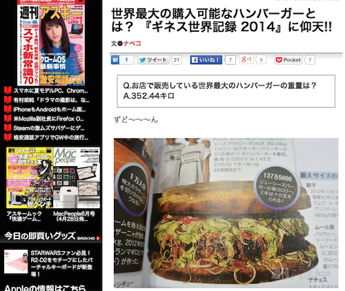 ほんと、ハンバーガーは世界中(主にアメリカ)で愛されているんですね。今度はどんな世界記録が出るのでしょうか。