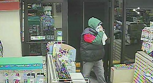 事件があったのはマサチューセッツ州イーストハンプトン、97ユニオンストリートにあるセブンイレブン。11月14日金曜日の深夜3時44分頃、武器を持った男性(↑写真)が店内に入ってくると、カウンターにいた女性の従業員に武器を突き付け、現金を出せと脅しました。武器がなんだったかは明らかになっていませんが、緑色のフードをかぶり、白い布のようなものを顔にあてていたそうです。