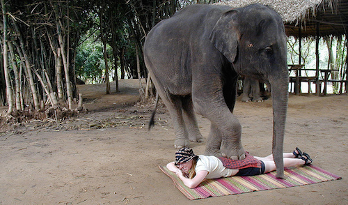 うわあ、いきなり怖そうなのがきたな!こちらはフィリピンのセブ市動物園で行われているもの。長さ5メートル程のヘビを4匹、体の上に乗せるのです。合計250キロにもなるというこのヘビ君達が体の上でその身をくねらせることで素晴らしいマッサージ効果が期待できます。時間は約15分間。ヘビが全然大丈夫な人ならむしろ楽しい治療になりそうなのですが・・・。