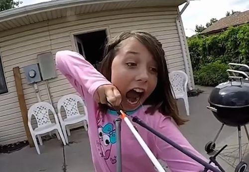 写真の女の子はアレクシス・デイビッドソンちゃん、11歳。コロラド州のオーロラ市に住んでいます。お父さん曰く「特別な子」というアレクシスちゃんは、自分でやってみたいと言い出したそうで、クロスボウに歯を結びつけると、勢い良く矢を飛ばしたのでした。こちらがその映像です。